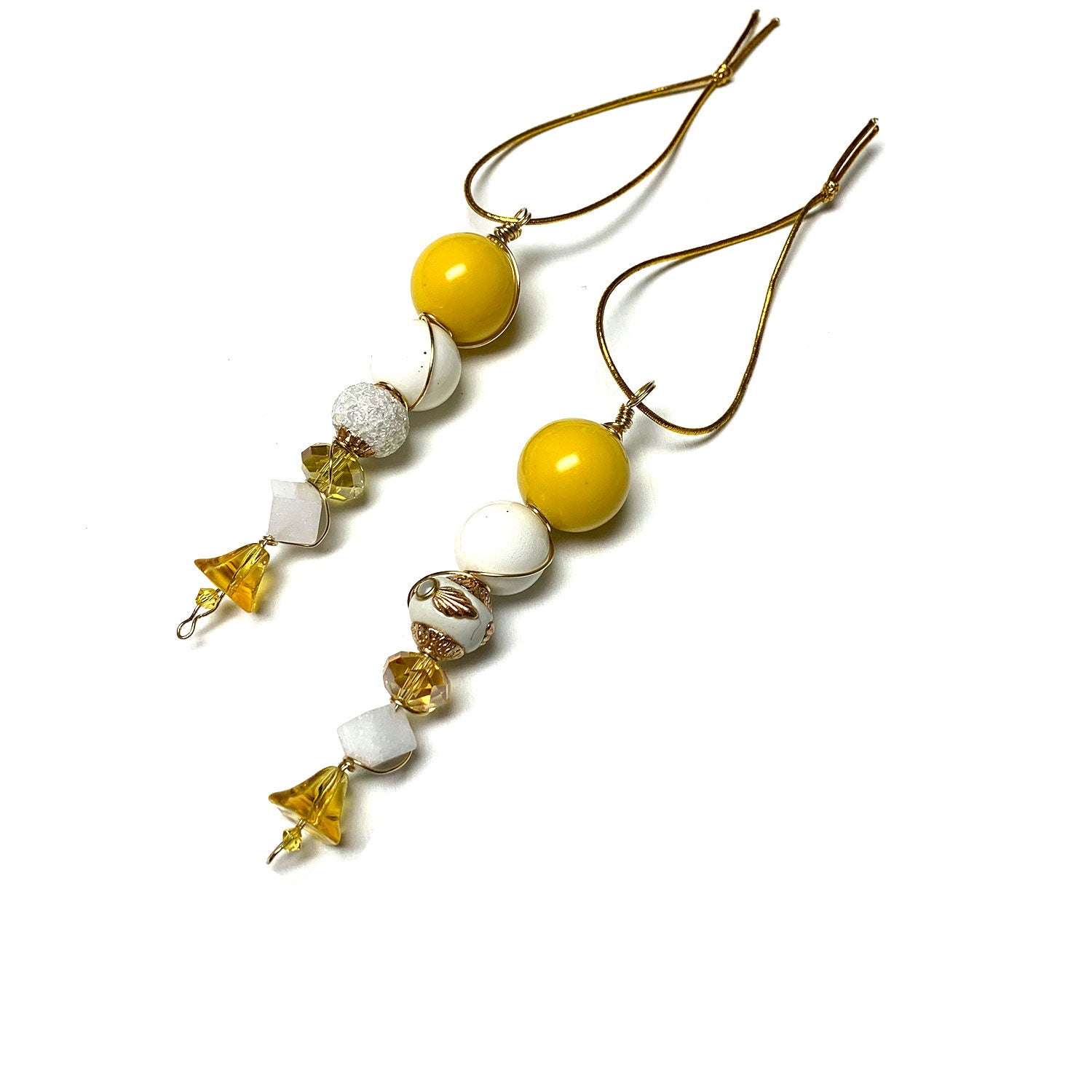 Sparkling beaded icicle ornaments for you! These are perfect for holiday ornaments, sun catchers, meditation, or as a year-round decoration. They can be hung on the tree, placed on trays, as door knob decorations, or placed in a window to catch the light as they turn. These are handmade from glass, resin, metal beads. They come with a hanging string.