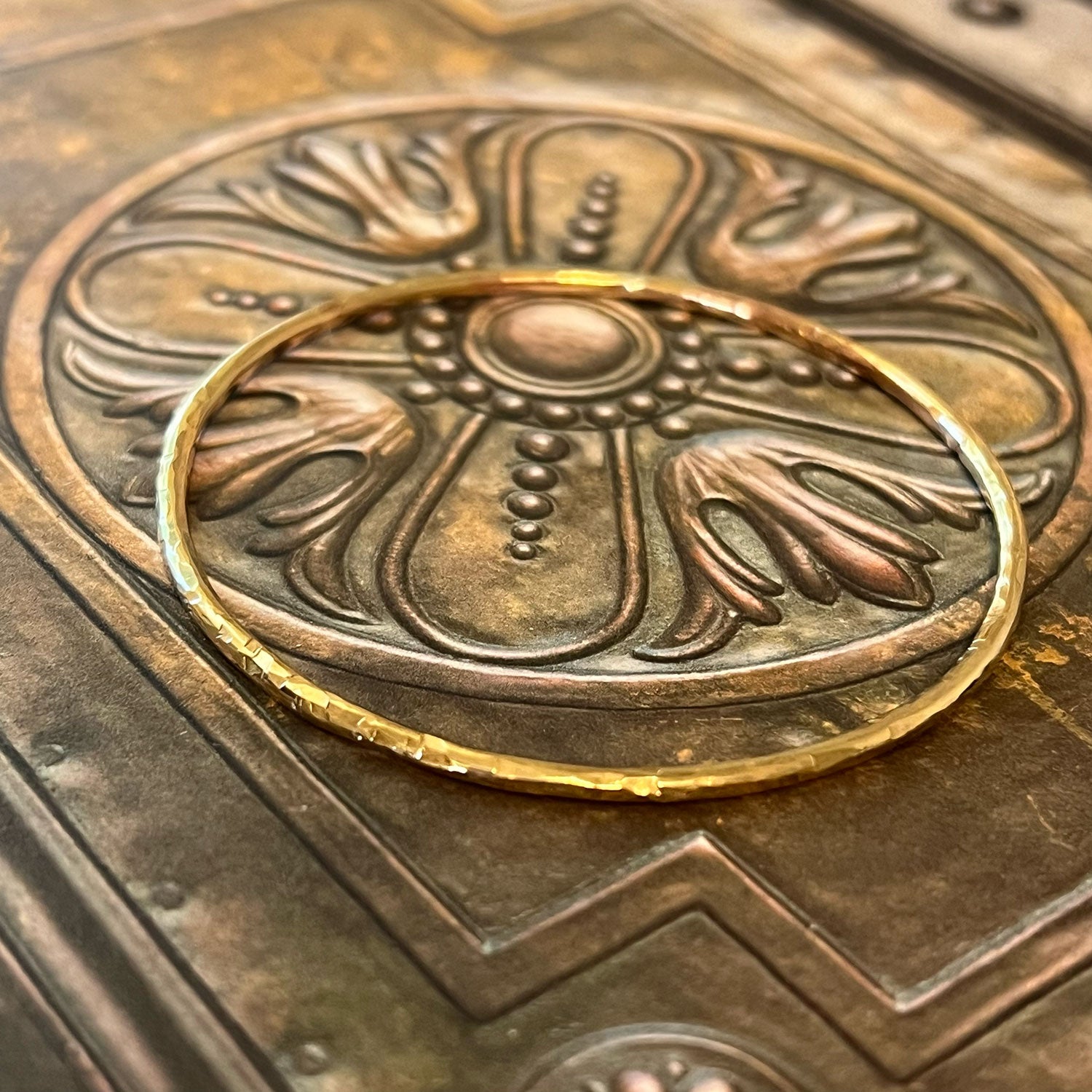 PATTERNED BRASS THIN BANGLE - CIRCLE OF LOVE TALISMAN