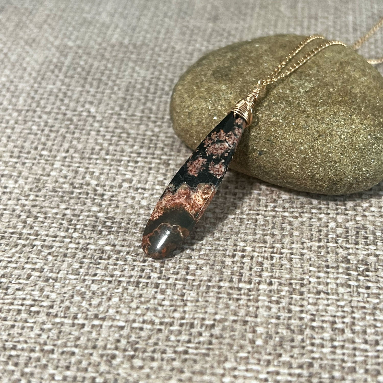 - Materials: Red Snowflake Obsidian Long Drop, Rose Gold Filled Wire and Chain