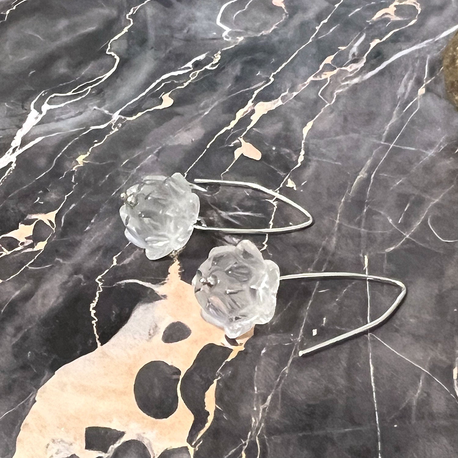 - Handmade Sterling Silver Carved Quartz Lotus Earrings
