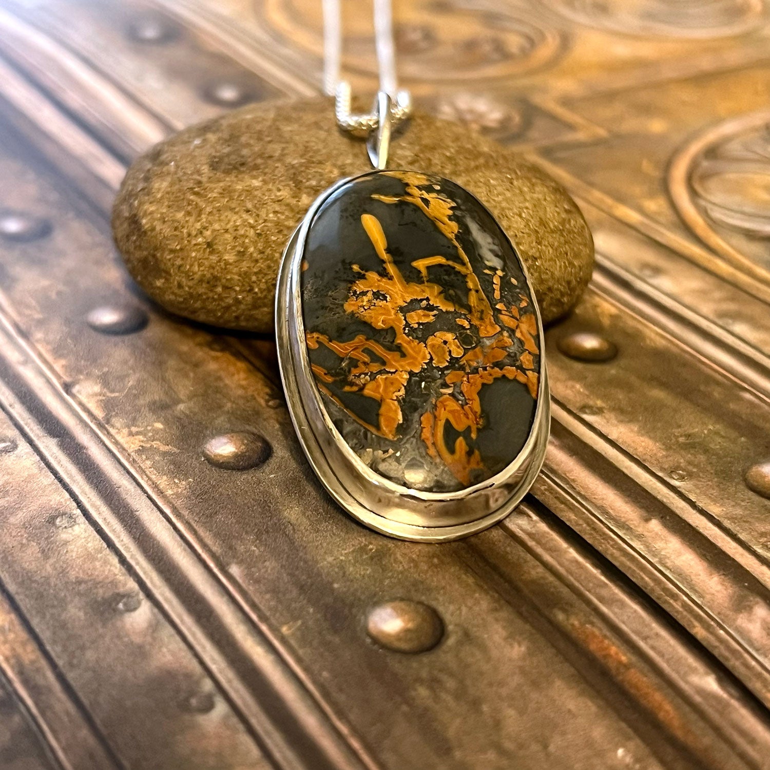 - Handmade Sterling Silver Maligano Jasper Oval Necklace