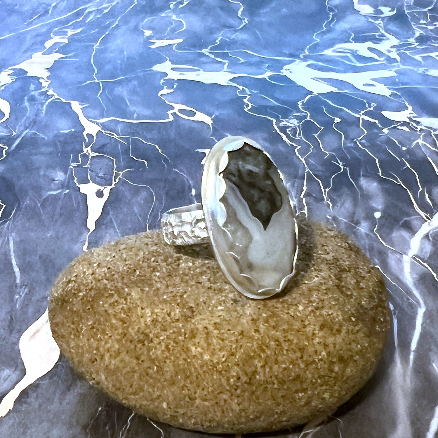 STERLING SILVER OHIO BLUE FLINT RING - FIRE AND EARTH TALISMAN