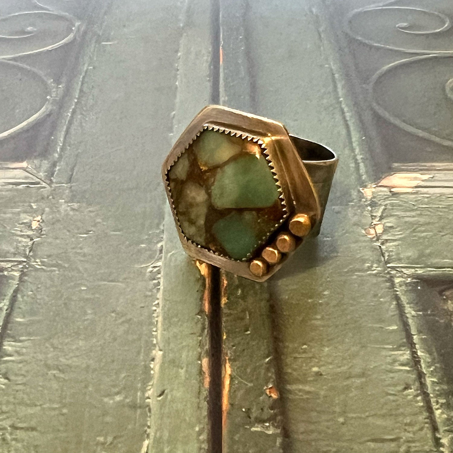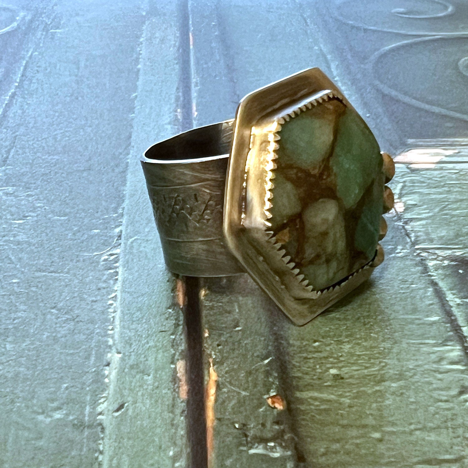 STERLING SILVER PERUVIAN AMAZONITE BRONZE RING - SOUL SOOTHING TALISMAN
