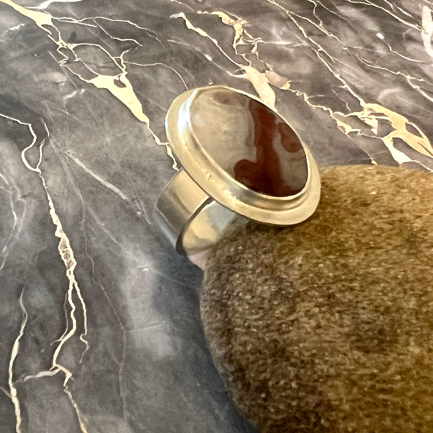 - Sterling Silver Red Plume Agate Ring